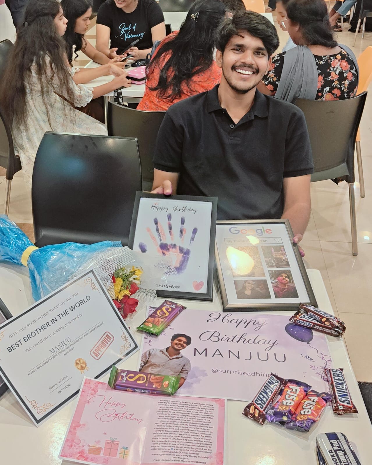 Actually I'm searching for a good page to surprise him on his special day....you people made it more special to him....ur surprise made him to cry...and u guys are really awesome and mi efforts koodaa 🙇🏼♀️ next planings em unna Inka meeru na go to page aiyopaaru 🥰 definitely I recommend ur page to my friends and family also...reasonable cost lo kooda inthaa manchigaaa surprise istharu ani assal expect cheyyaledhu....u people really made his day more and more special and now he is jumping with joy because of you people.